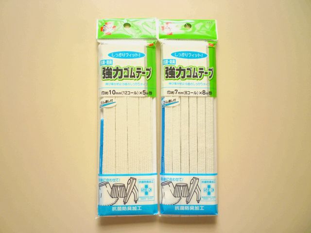 | 商品番号 F−34 ソフト織りゴム ¥352 (本体価格¥320) ソフト織りゴム35mm巾 ¥264 (本体価格\240/m) | 商品番号 F−46 帽子用ゴム 6mm巾 白 ¥440 (本体価格¥400) 商品番号 F−47 防止用ゴム 6mm巾 黒 ¥440 (本体価格¥400) | 商品番号 F−48  帽子サイズテープ 25mm巾 3色 ¥308 (本体価格¥280) |